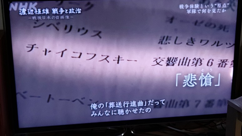 와타나베는 1945년 학병으로 징집되었을 때의 쓰라린 경험으로부터 차이코프스키 교향곡 제6번 ‘비창(悲愴)’을 장송행진곡으로서 스스로 듣기도 하고 많은 이들에게 들려주기도 했다는군요.
