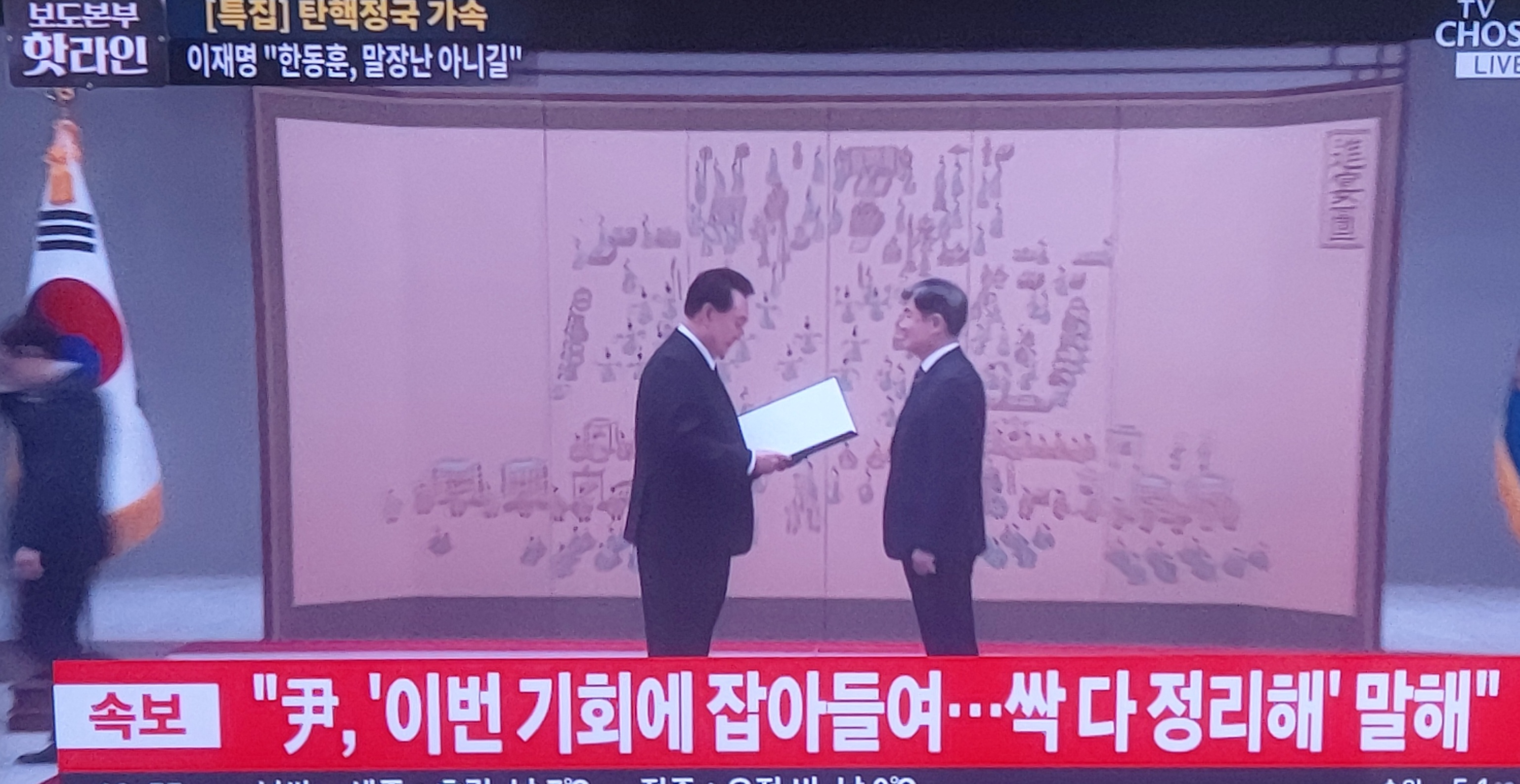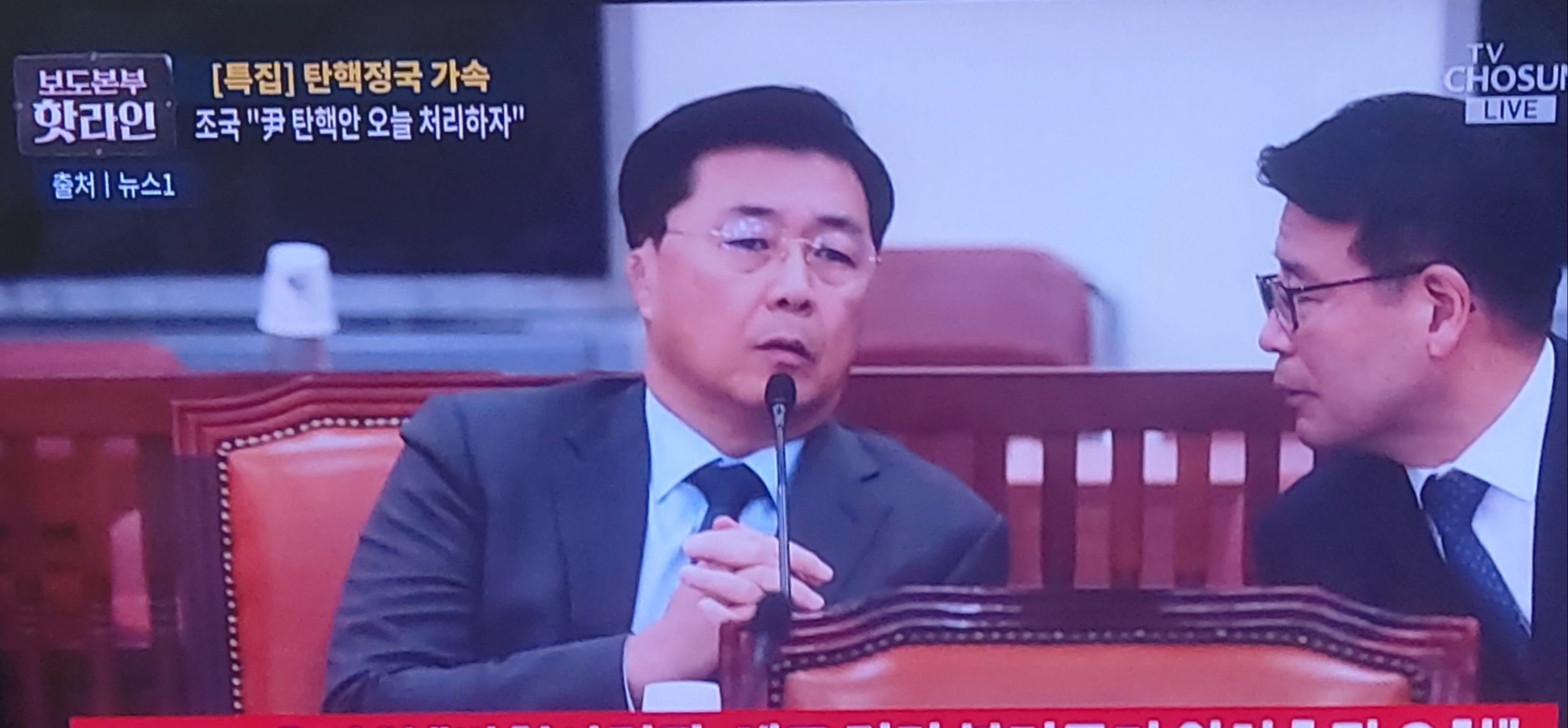 감사원장과 검사 3인의 탄핵 ----12월 5일(木) 최재해 감사원장과 이창수 중앙지검장 등 검사 3명에 대한 탄핵소추안이 민주당이 장악한 국회 본회의에서 의결됨---- 그리고 정부 예산액 대폭 삭감, 민주당에 의한 상설특검의 추진 등등으로, 대통령부(府 : 용산대통령실)와 국가기관의 역할이 마비되고 있다고 윤성녈은 판단한 것으로 보인다.