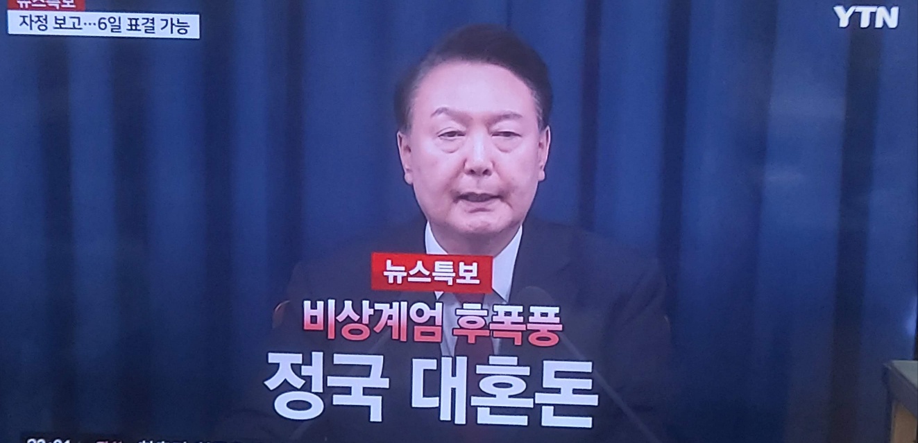 그런 상황 하에서 12월 3일(火) 밤 10시 23분경, 윤성녈은 대통령의 고유권한으로서의 비상계엄을 드디어 발령한 것으로 비쳐진다.