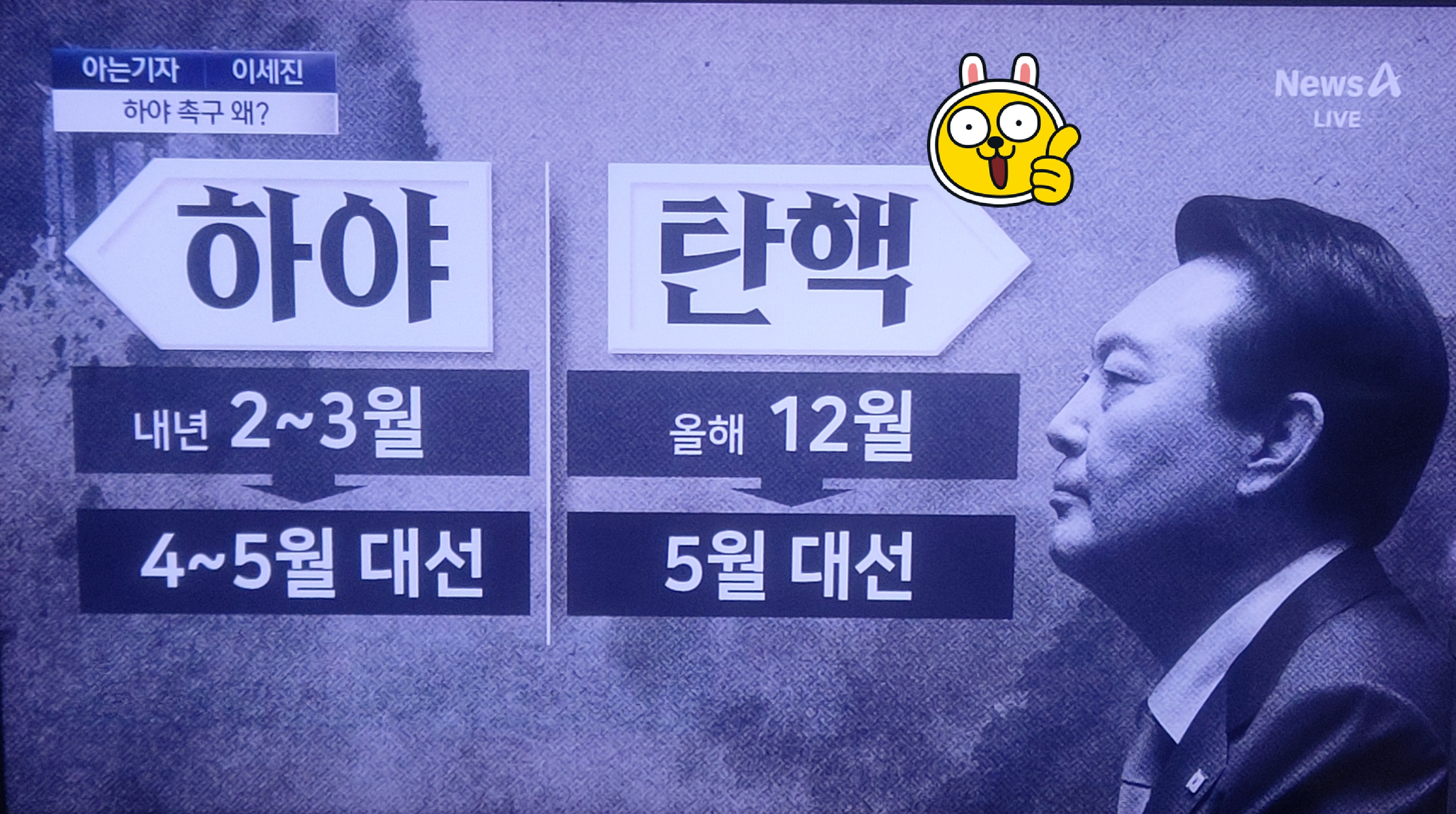 ↑ 지금 상황에서 예측해볼 때, 12월 14일 오후 4시의 국회에서의 탄핵의안(議案) 표결 - 내년 3월까지의 헌재의 탄핵심판 가결 후 내년 5월 대선을 치르는 일정이 유력하다.