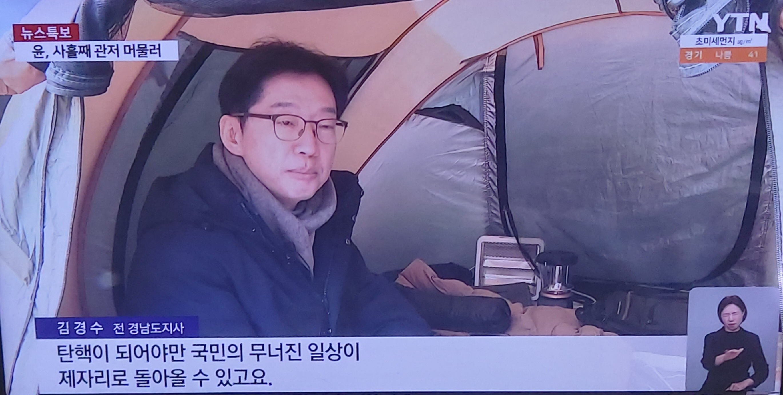 김경수도 마찬가지입니다. 尹이 탄핵이 되어야만 국민들의 무너진 일상이 제자리로 돌아올 수 있다고 하면서, 며칠전부터 광화문 언저리에서 '헝거 스트라이키(ハンガー・ストライキ=hunger strike : 단식)'을 하고 있다는군요.