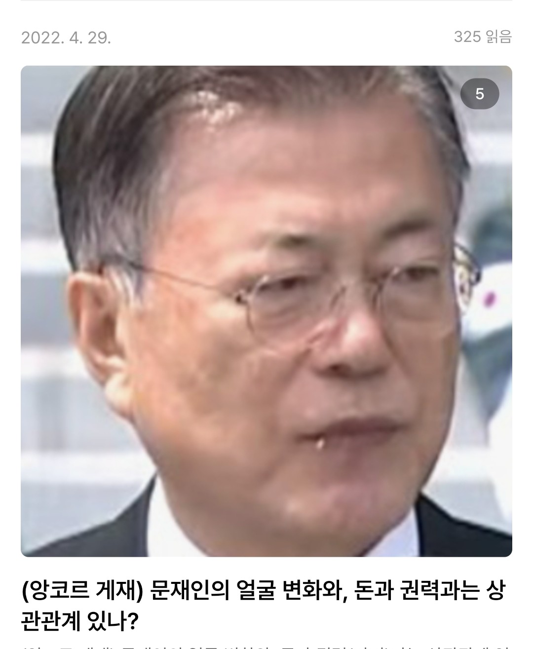 (앙코르 게재) 문재인의 얼굴 변화와 돈ㆍ권력(자리)과는 상관관계 있나? → https://m.blog.naver.com/ja4...