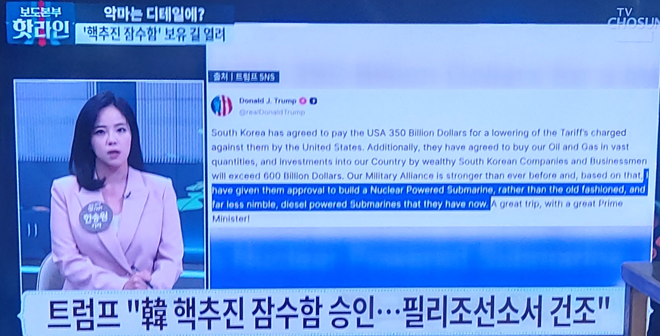 (트럼프는 한국의 핵추진잠수함 보유(건조)와 운항을 10월 30일 아침 승인했다. 중국과 북한을 잘 견제해 달라는 의미가 담겨 있었을 것이다.)